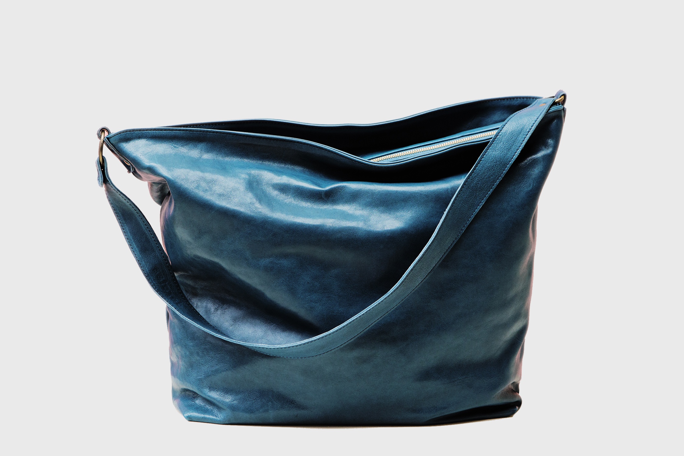 Zozo is a cross body or shoulder bag designed with a rounded silhouette. The Zozo have been handcrafted in blue leather in Barcelona, Spain.