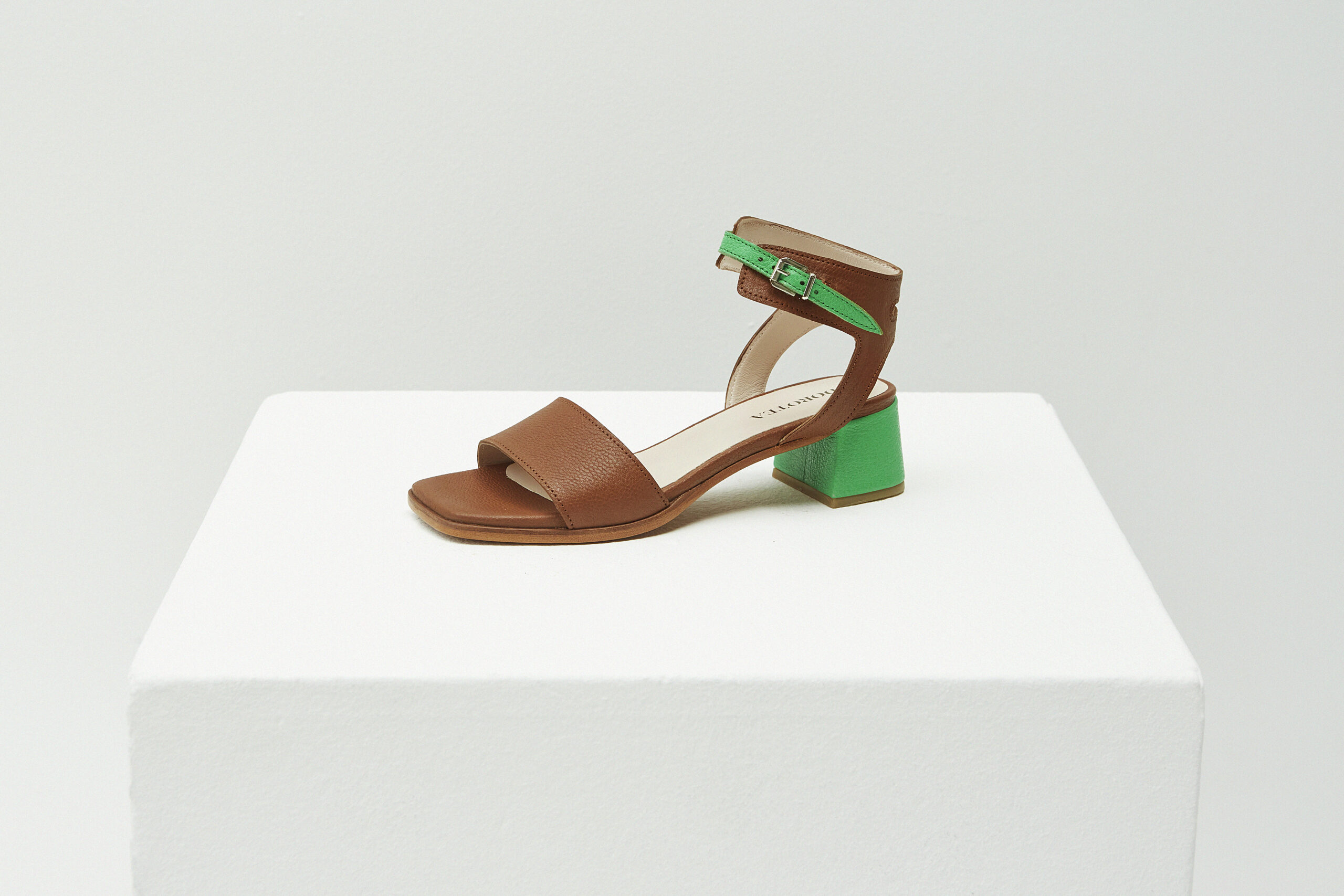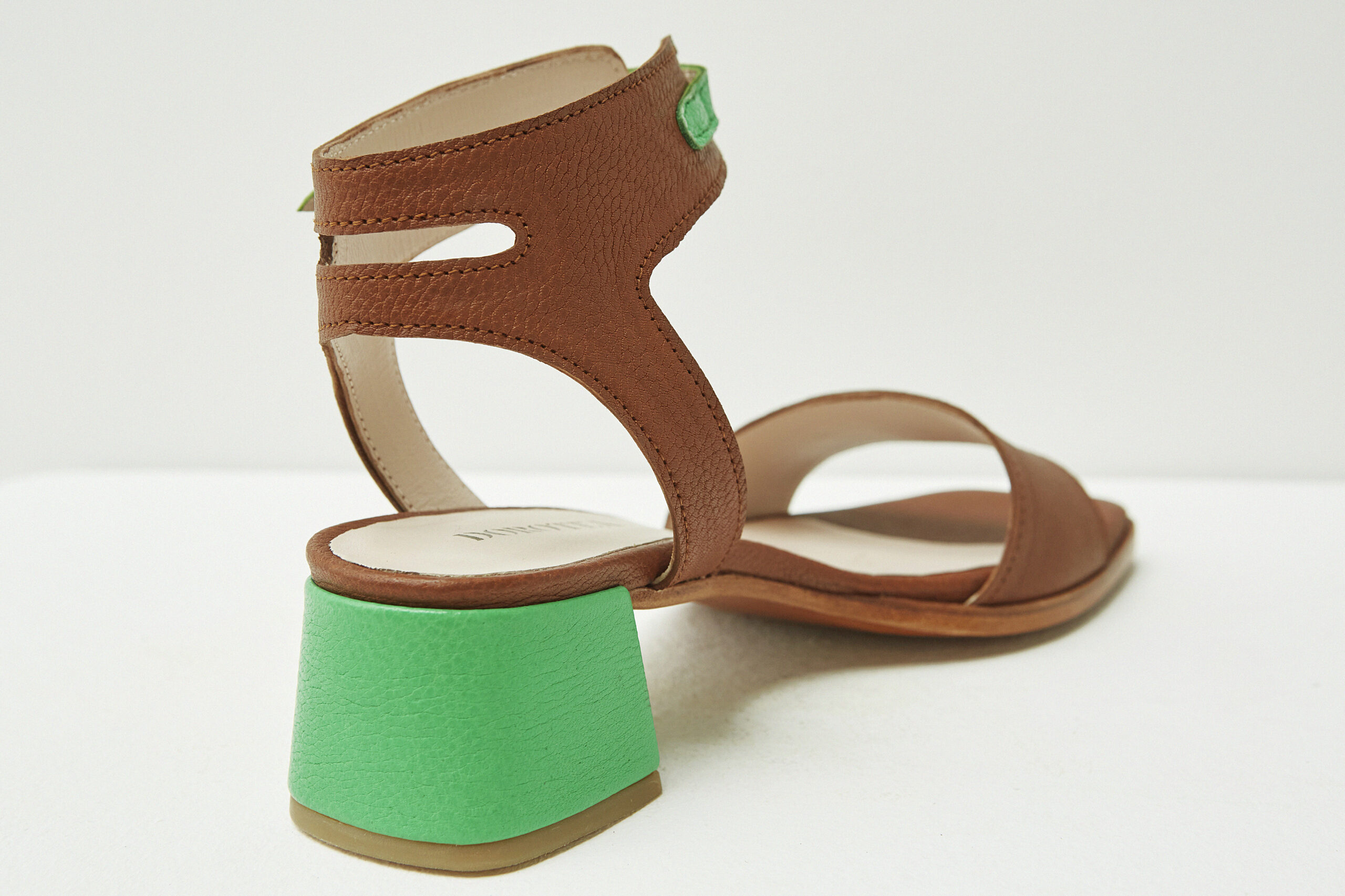 La sandalia de tacón medio Carmen en piel de becerro cuero es un modelo elegante. Con un tacón cuadrado forrado on piel de becerro abatanada en color verde manzana igual que la tira que envuelve el tobillo, que le lo desenfada , ofrece altura sin comprometer el confort y un giro inesperado a todos tus looks. La sujeción en el tobillo te permitirá caminar con comodidad. Llévelas con un pantalón de crepe o un vestido largo.